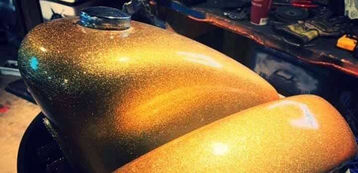 I think the finished project speaks for itself, complete with some custom painting on the roof with lots of sparkle, Candy Apple Red fades, lace work over top of some big metal flake, There is an added bonus with a fully custom airbrushed mural on the trunk of this beauty. Big Tiki’s Airbrushing is local to the Edmonton area, but can also come to you depending on the project. Size doesn’t matter when it comes to making his customers feel cooler as they walk or drive away with their new fully custom paint job.